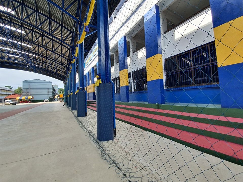 ติดตั้งตาข่ายตาข่ายกั้นสนามตะกร้อ โรงเรียนนานาชาติ ตากสิน อบจ บ้านค่าย จังหวัดระยอง